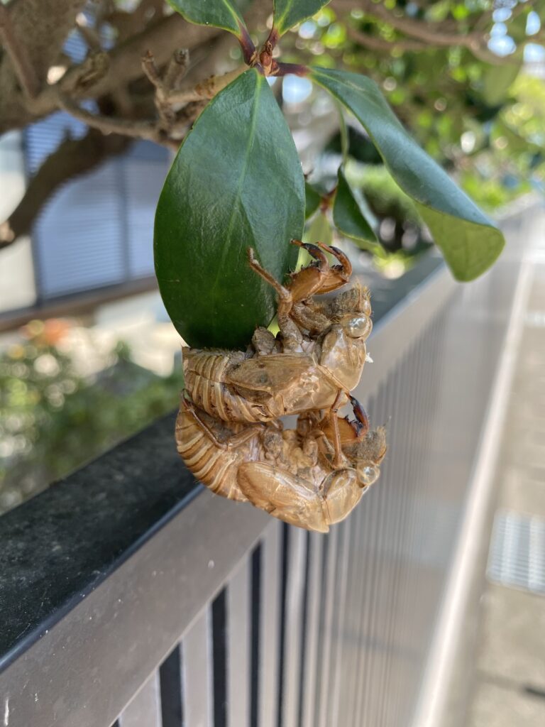 庭の木の下に何個も穴が空いていて と思っていたら抜け殻が幾つもありました😅